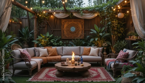 living, space, cosy, comfortable, seating, fire, tabletop, plant, decor, evening, light, ambience, retreat, home, relaxation, gathering, friends, family, backyard, nature, design, elegance, warmth, furniture, cushion, rug, garden, wood, atmosphere, textile, soft, glow, charme, inviting, aesthetic, tranquil, peaceful, stylish, relaxing, harmony, arrangement, leisure, serenity, enjoyment, lifestyle, vacation, escape