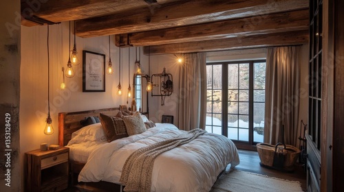 bedchamber, rustic, cosy, warm, lighting, interior, home, design, decor, wood, bed, comfort, relaxation, atmosphere, textile, curtain, window, nature, peaceful, stylish, intimate, modern, soft, aesthetic, furnishing, wall, natural light, lamp, tranquil, basket, throw, blanket, seasonal, environment, furniture, artistic, contemporary, architecture, craftsmanship, room, elegance, serene, decoration, log, layout, harmony, architecture style