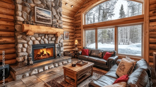 cosy, rustic, living room, stone, fireplace, winter, view, cabin, comfort, interior, warm, architecture, wood, natural, snow, home, furniture, decor, sofa, table, log, tranquil, environment, scenic, peaceful, lighting, design, hearth, residential, chalet, beauty, inviting, atmosphere, relaxation, family, gathering, warmth, seating, remote, landscape, nature, traditional, style, elegance, window