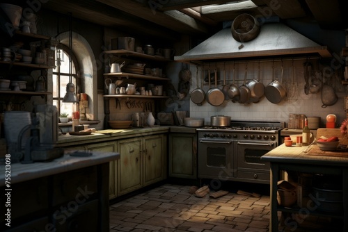 Cozy Simple kitchen room. Modern design. Generate Ai