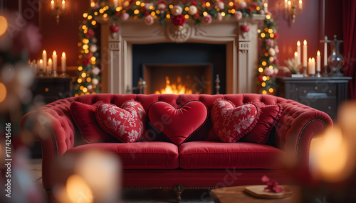 Cozy sofa with romantic decor for a valentine's evening