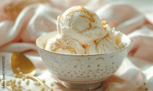 cozy vanilla ice cream with golden edible toppings