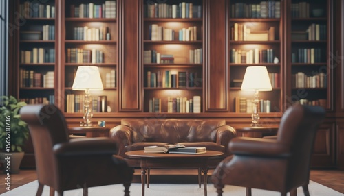 Cozy Vintage Library With Dark Wooden Paneling And Elegant Furniture, Creating A Warm Atmosphere Perfect For Reading And Relaxing.