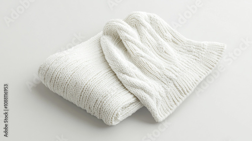 Cozy white knitted blanket folded on a soft surface ready for a comfortable evening at home