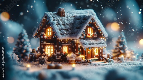 cosy, winter, cabin, snow, holiday, light, enchanted, forest, festive, warm, glowing, night, magical, home, outdoors, nature, decor, celebration, season, environment