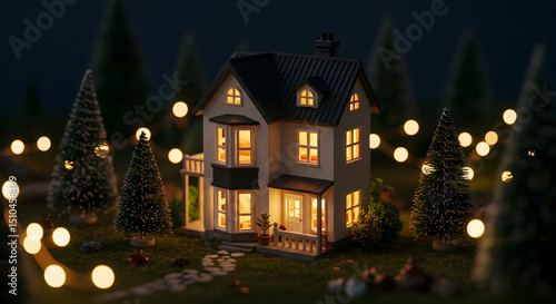 Cozy Winter House Night Lights Festive Home Christmas Decor Holiday Season Family Gathering Warmth Comfort Magical Atmosphere Dream Home Winter Wonderland