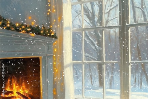 cosy, winter, scene, fireplace, window, snow, warm, interior, home, decoration, festive, light, relaxation, seasonal, cold, holiday, tranquil, peaceful, comfort, indoor, snowing, mantel, painting, artwork, serene, ambience, glow, frost, dreamy, elegant, classic, rustic, inviting, hearth, christmas, atmosphere, calm, picturesque, traditional, aesthetic, art, view, soft, gentle