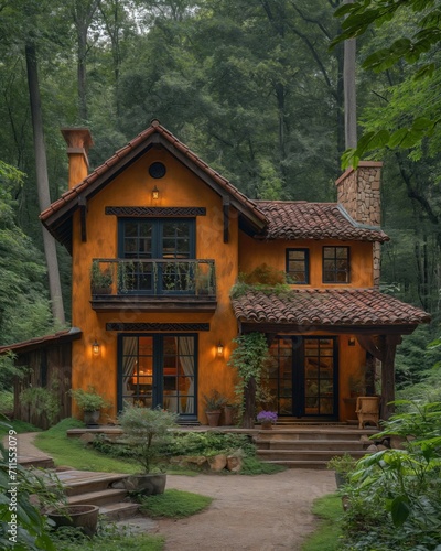cabin, timberland, dusk, cosy, forest, nature, calmness, illuminated, rustic, home, retreat, peaceful, architecture, residential, greenery, twilight, shelter, wooden, house, comfort, serene, habitat, environmentally friendly, sustainable, evening, warm light, get-away, porch, balcony, comfortable, lush, tree, secluded, living, environment, ecotourism, vacation