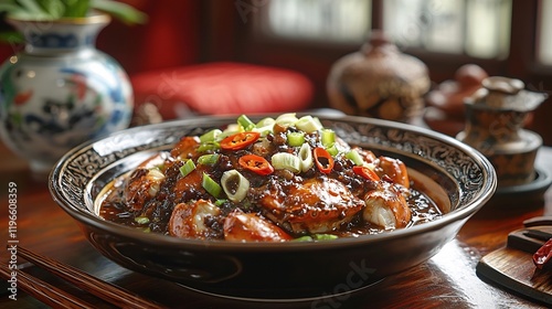 crab, chili, scallion, wooden table, chinese, traditional, seafood, spicey, vibrant, festive, cultural, asian cuisine, food, cookery, cooking, lunch, dish, tomatoes, pepper, cook