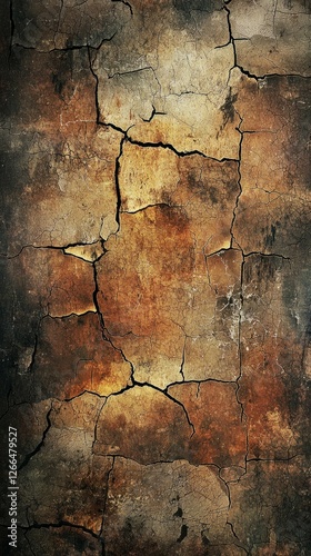 Cracked and Weathered Wall Texture with Earthy Tones and Depth