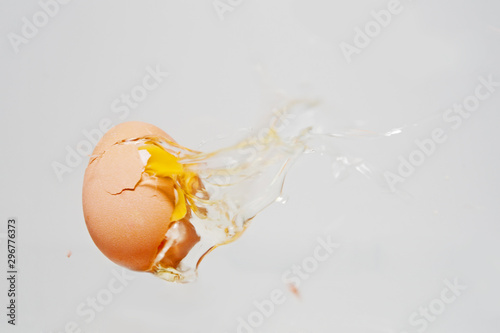 cracked egg with yolk on white background