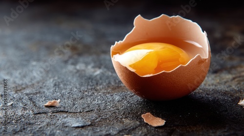 egg, eggshell, yolk, cracked, broken, food, raw, ingredient, protein, breakfast, cooking, baking, closeup, macro, dark, texture, surface, brown, yellow, nourishment, healthy, diet, organic, culinary, preparation, kitchen, still life, single, isolated, natural, fresh, uncooked, shell, food photography, gastronomy