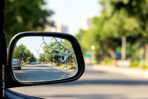 mirror, cracked, car, vehicle, street, road, accident, damage, repair, auto, transportation, safety, insurance, perspective, view, glasses, broken, city, urban, traffic, driving, automotive, maintenance, blur, background, side, transport, travel, scene, automobile, risk, issue, hazard, obstacle, defect, exterior, car, automobile