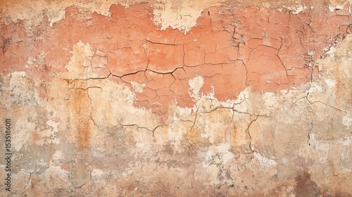 Cracked wall with peeling paint revealing layers of history in an abandoned building