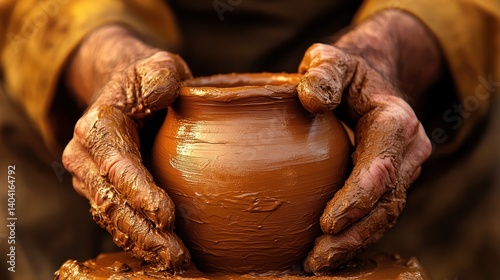Crafting a clay pot on the wheel, hands forming a pottery project by hand