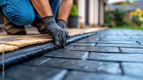 paving, stone, installation, craftsman, home, exterior, driveway, patio, men at work, hand, construction, concrete, landscape, repair, improvement, project, ground, brick, pavement, masonry, technician, building, manual, work, job, professional, skill, industry, service, labor, effort, detail, sharpened, precision, quality, texture, surface, design, homeowner, house, residential, craftsmanship, expertise