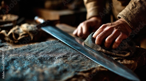 craftsman, knife, sharpening, workshop, tool, wood, evening, craftsmanship, sharpened, attention, hand-made, shopkeeper, steel, blade, workbench, skill, artisan, leather, clothes, creativity, tradition, labor, precision