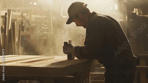 craftsman, carpenter, woodworker, workshop, wood, dust, working, hand-made, furniture, making, handcraft, skill, artisan, precision, detail, passion, craft, construction, building, tool, carpenter's shop, joinery, cabinetry, industry, manufacturing, traditional, skilful, dedicated, hard-working, labor, manual, labourer, occupation, profession, trade, career