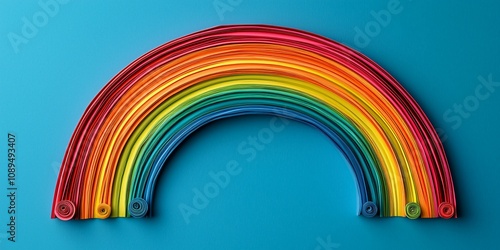 Craftsmanship and creativity in paper art. A vibrant, colorful rainbow made of curved lines against a blue background, symbolizing joy and diversity.