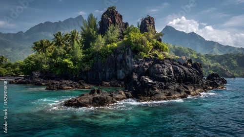 craggy, black, volcanic, island, tropical, green, cover, sea, water, beach, sky, landscape, nature, coast, mountain, ocean, siam, travel, summer, rock, lake, shore, bay, vacation, view, tour tourism, mountain, river, sand