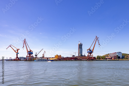 Crane and ships at quay in Gothenburg,Sweden,Scandinavia,Europe