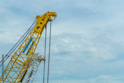 Crane lift yellow on blue sky background