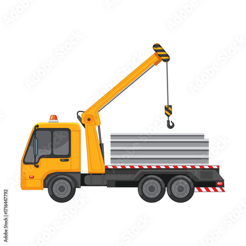Crane Truck with Metal Sheets Cartoon Illustration for Construction