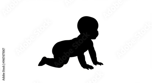 Crawling Baby Silhouette, Infant Silhouette: Black and White Baby Illustration