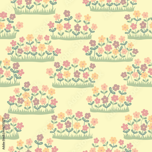 Cream and Multicolor Wildflower Nature Theme Seamless Repeat Vector Pattern. Beautiful hand drawn vector design, perfect for fabric, wrapping paper, wallpaper, home decor, quilting, gifts and apparel.