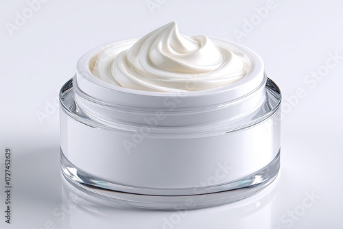 cream, jar, white, smooth, texture, cosmetic, skincare, product, cardboard box, luxury, cosmetic, beauty, moisturiser, container, creamy, bottle, glasses, plastic, open, top, swirl, elegant, high, quality, glossy, modern, studio, shot, photo, realistic, three-dimensional, render, skin, care, moisturise, soft, light, background, empty, closeup, design, commercial