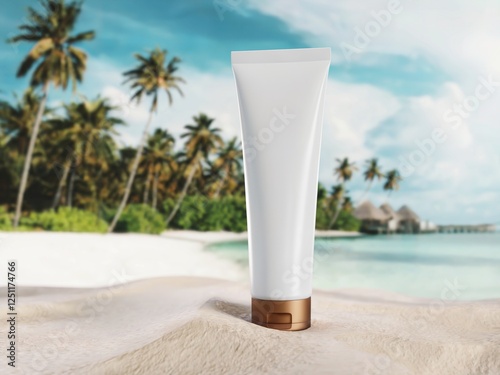 tube, cream, sunblock, lotion, beach, sea, design, cosmetic, graphic, three-dimensional, advertisement, sun