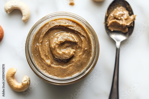 cashew, butter, nut, jar, spoon, creamy, food, widener, snack, healthy, nourishment, ingredient, organic, natural, vegetarian, protein, dietary, almond, breakfast, epicure, marble, surface, delicious, edible, dollop, swirl, beige, table, closeup, glasses, cook, meal, seed, alternative, texture, paste, energy, cookery, treat, fitness, homemade, kitchen