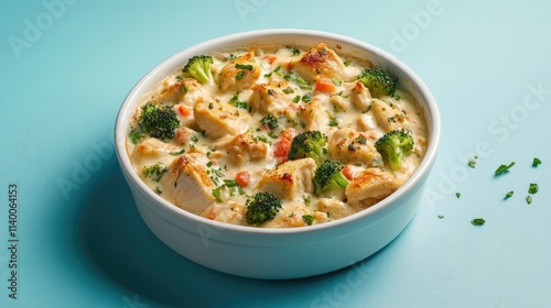 chicken, broccoli, bake, creamy, dish, bowl, white, vibrant, blue, background, herb, fresh, food, meal, cooking, cookery, receipe, healthy, garnish, savoury, delicious, comfort, dinner, plate, vegetable, roast, eat, nourishment, epicure, presentation, culinary, wholesome, homemade, dining, tasty, fork, spoon, portion, serving, ingredient, favor, aromatic, seasonal, colourful, bistro