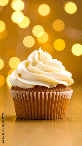 cupcake, cream, dessert, sweet, baked, gold, light, festive, treat, delicious, deliciously, whipped, fluffy, sweetness, birthday, party, image, food, cake