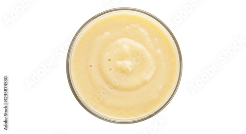 Creamy Delicious Banana Smoothie in Glass Bowl Top View Healthy Breakfast