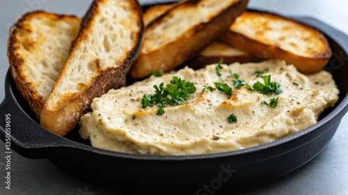 Creamy dip served with toasted bread slices