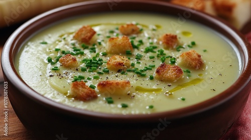 Creamy Leek and Potato Soup Recipe with Chives and Croutons