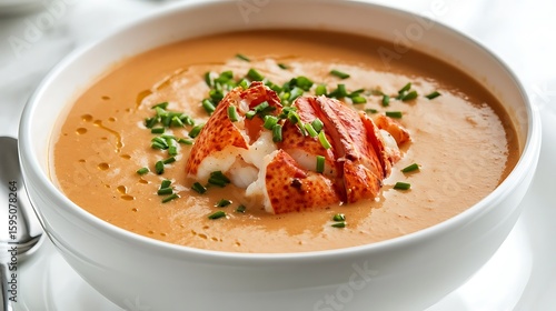 Creamy Lobster Bisque Soup Topped with Lobster Meat and Chives