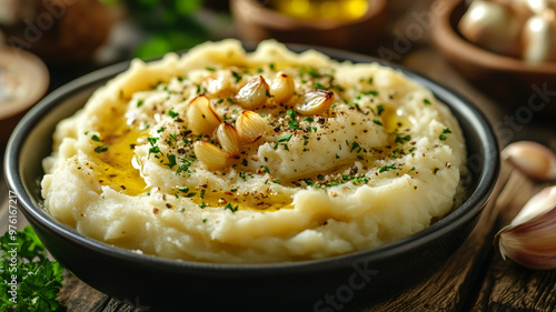 mashed potatoes, garlic, comfort food, creamy, homemade, bowl, side dish, parsley, butter, seasoning, herb, delicious, dinner, closeup, epicure, rustic, traditional, flavorful, cookery, appetising, indulgent, savoury, meal