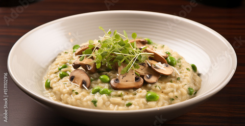 Creamy Mushroom Risotto in Natural Window Light with Table Setting