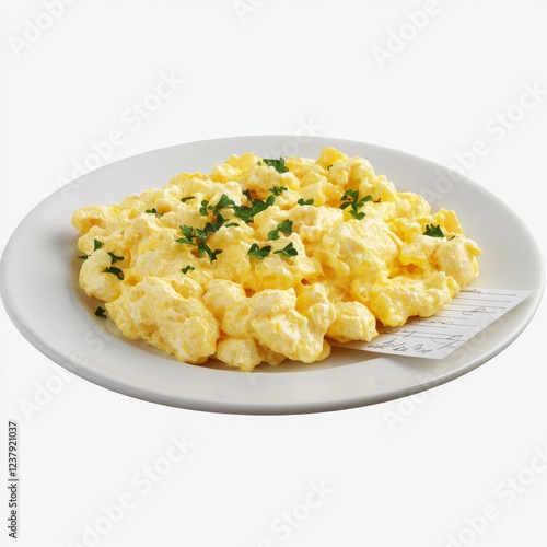 Creamy Scrambled Eggs Garnished with Fresh Chives on White Plate Ready for a Delicious Breakfast or Brunch Dish