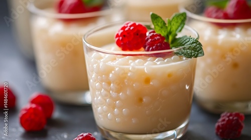 tapioca, pudding, creamy, dessert, sweet, treat, chewy, pearl, raspberry, mint, glasses, bowl, colourful, food, epicure, tasty, delicious, homemade, receipe, snack, traditional, cookery, serve, plated, party, event, celebration, refreshing, summer, texture, presentation, natural, indulgent, culinary, cleaving, unique, favor, smooth, warm, cold, artisanal, seasonal