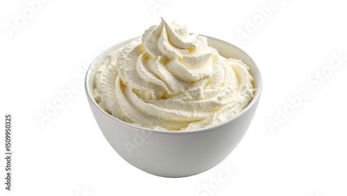 Creamy Whipped Cream Topping in Bowl isolated on transparent background