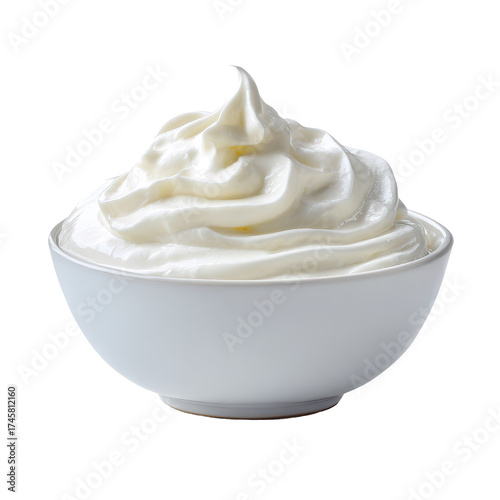 cream, dairy, dessert, sweet, bowl, white, isolated, studio shot, food photography, ingredient, delicious, treat, frosting, garnish, background, empty, nobody, fresh, smooth, texture, closeup, deliciously, whipped cream, topping, confectionery, culinary, plain, simplistic, clean, minimalist, snack, dairy product