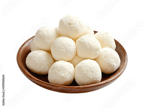 Creamy White Cheese Balls in Wooden Bowl: A Delicious Dairy Treat