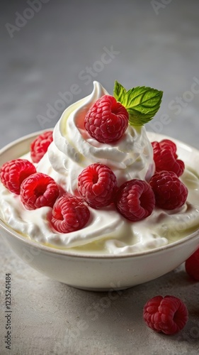 Creamy Yogurt with Whipped Cream and Fresh Raspberries