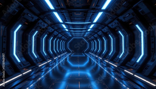 create, rendering, dark, futuristic, spaceship, corridor, modern, blue, light, position, subject, bottom, allow, ample, copy, space, top, optimize, avoid, using, term, specific, name, ai, generative