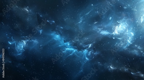 Create a blue background with a cosmic theme, including galaxies, stars, and nebulae, capturing the vastness and mystery of space.