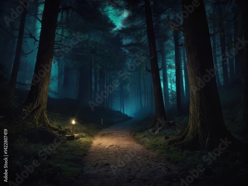 Create a captivating introductory image with mysterious elements, such as a night-time clearing or a winding path, to set the tone for the exploration of the mystery.