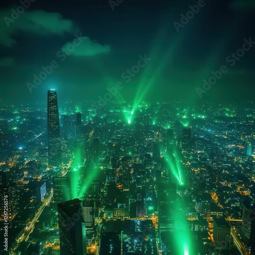create, city landscape, green, light, urban, skyline, architecture, night, illumination, city, energy, structure, metropolis, culture, scenery, artistic, foreground, silhouette, streetscape, public, background, environment, horizon, exterior, visual, landscape, transit, ambience, commercial, twilight, aesthetic, colourful, dynamic, nightlife, panorama, atmosphere, blackboard, technology
